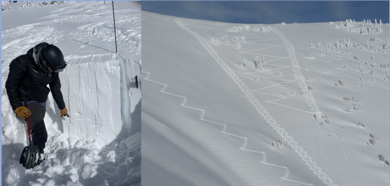 My colleague Andrew Nassetta (snow-pro, avy forecaster, and educator of all things avalanche extraordinaire) points to our PWL now deeply buried and getting harder to provoke. We took that snowpack info and slowly stepped into bigger terrain this weekend.