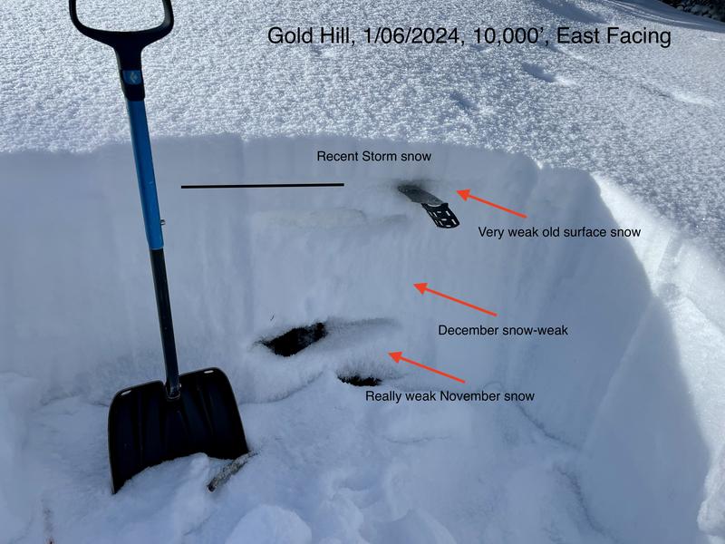 - Very, very weak snow that faceted during dry weather in mid to late December (buried Jan 4th)