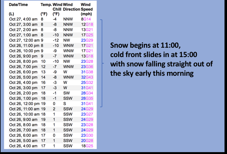 Data dump from Windy Peak (10,662') clearly depicts the evolution of our recent storm.