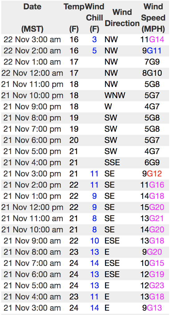 Above is 24 hour weather data from Windy Peak (10,662') and Chalk Creek (9,169')