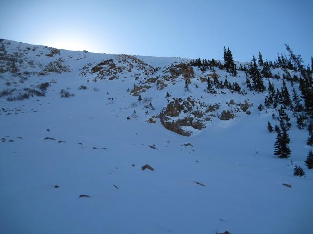 Filled in now and tough to make out in the image above, but Ted noted a natural slide on the steep, heavily wind loaded slope of Murdock Bowl near Bald Mountain Pass, that ran earlier this week as a result of Monday's big winds.