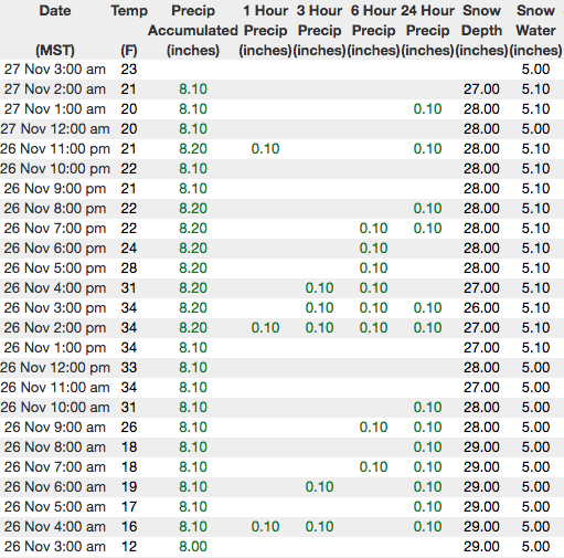 We are working to get the Uinta weather network back online. In the meantime, above is 24 hour data from Trail Lake (9945')
