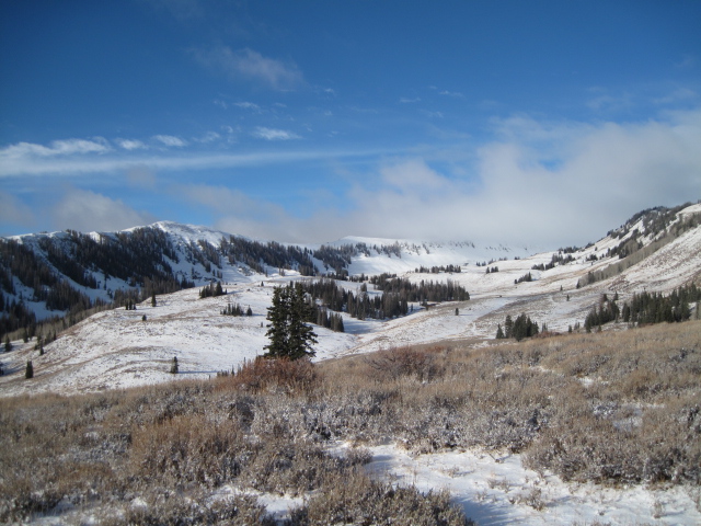 Plowing is done on Mirror Lake Highway, but Wolf Creek Pass is still open. However, just 'cause you can see your rig parked near Wolf Creek, doesn't mean the terrain you're choosing to ride is good to go.