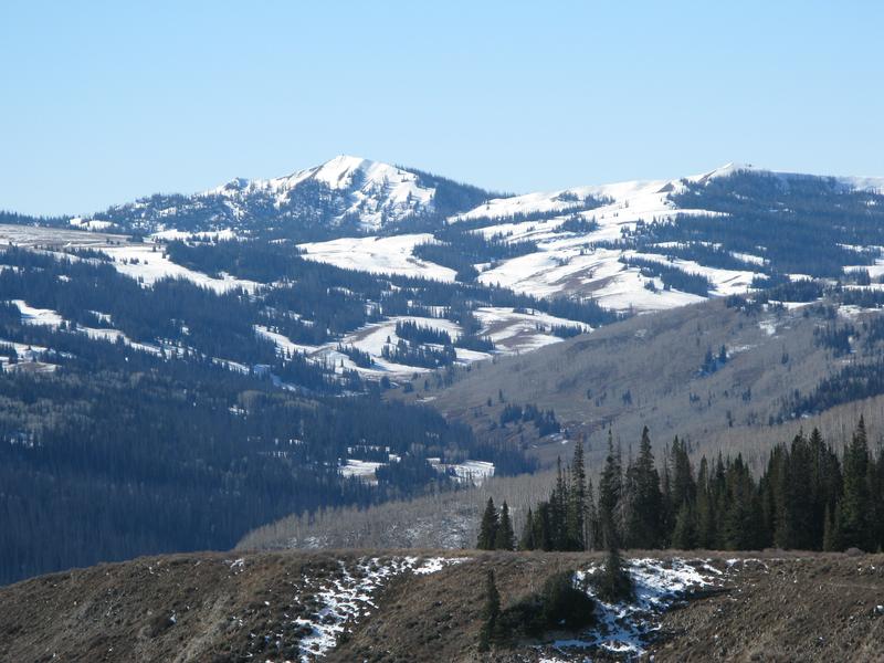 I was on a weather station recon mission this weekend. Here, I'm looking across the southern half of the range from Duchesne Ridge towards Tower Mountain, Roundy Basin, and Currant Creek Peak. With only 12"-20"of total snow depth, a road ride or a few turns on a low angle grassy meadow are the only games in town.