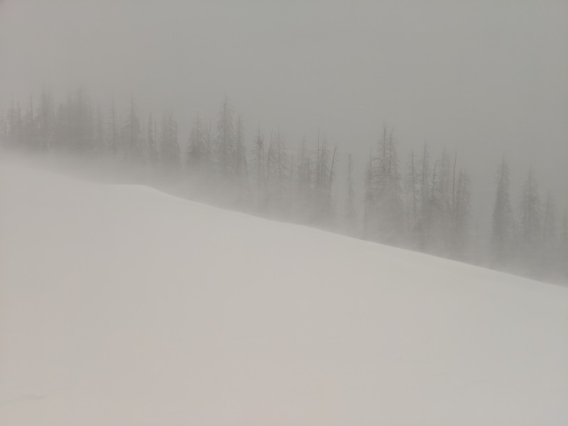 Visibility was less than zero, but backcountry riders report lots of cracking and collapsing yesterday... huge red flags to unstable snow.