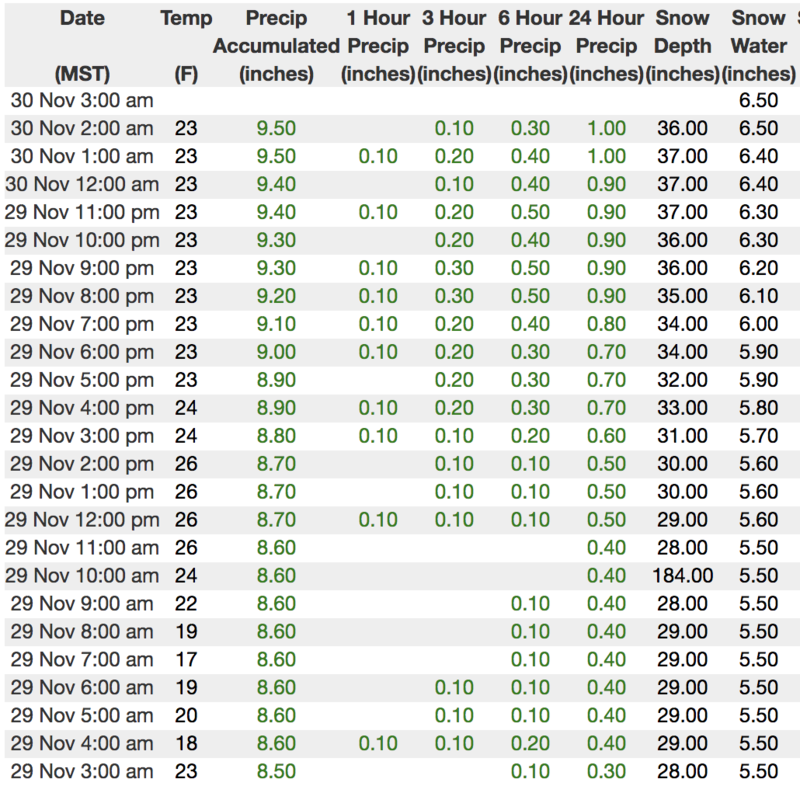 We are working to get the entire Uinta weather network back online. In the meantime, above is 24 hour data from Trail Lake (9945') and Windy Peak (10,662')