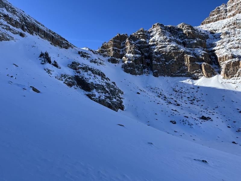 Our exit strategy is an easy one.... we can have a blast today simply steering towards low angle slopes with no overhead hazard.