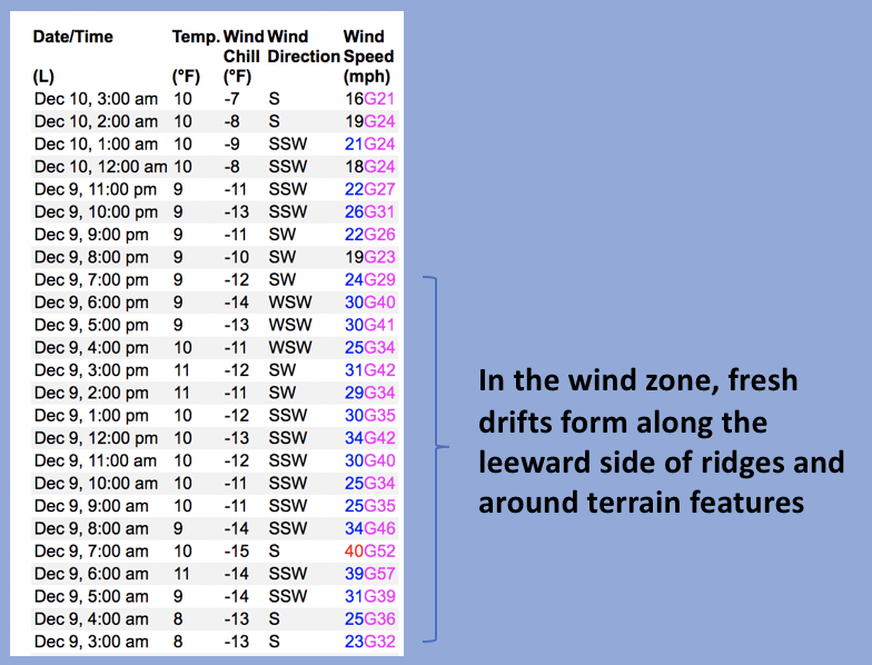 A 24 hour data dump reflecting recent winds from Windy Peak (10,661')