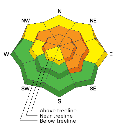 For today, you'll find CONSIDERABLE avalanche danger in mid and upper elevation terrain, especially on slopes facing the north half of the compass in the wind zone at and above treeline. Human triggered avalanches breaking to weak, sugary, midpack snow are LIKELY. Lower elevation shady slopes with similar layering offer MODERATE avalanche danger and human triggered avalanches are POSSIBLE.