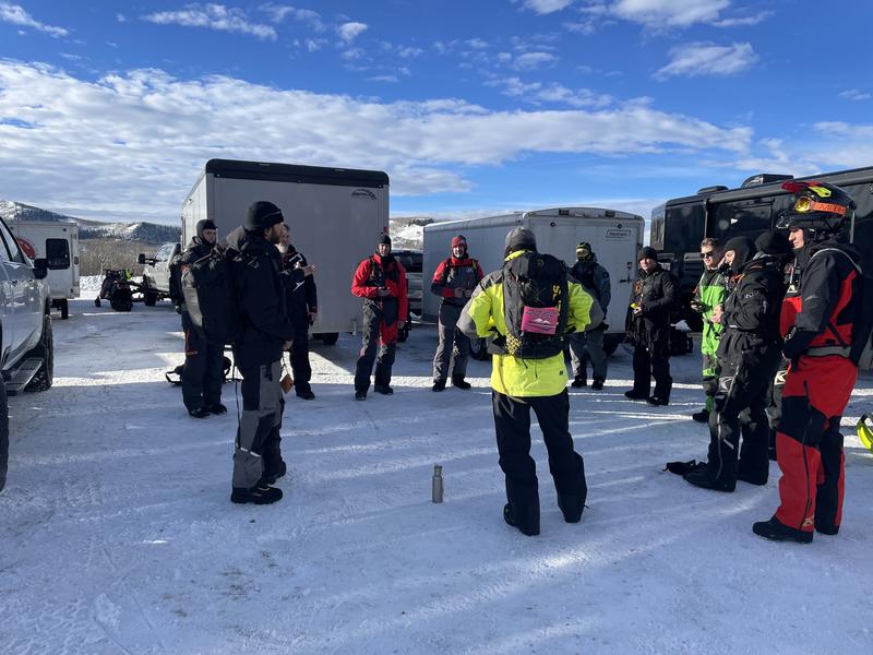 Andy Nassetta preaching the Avalanche Gospel whilst briefing yesterday's Sled 101 class with current conditions and avy hazard as they collectively formulate a plan for the day. What an honor  it was to join this crew and a pleasure to watch the high degree of avy awareness our  UAC education team brings to the table. As always, world class delivery served up by Joey Manship, Micheal Davis, and of course, master forecaster.... Andy Nassetta... solid work men!