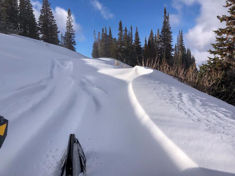 Today, I'll be on the lookout for and avoiding wind sculpted snow, especially if it appears fat and rounded or sounds hollow like a drum. Remember... the snowpack is a gong show and even a shallow wind drift could catch you off you're guard. That said, I’m steering clear of steep, leeward slopes in upper elevation terrain where even a small pocket of wind-drift snow resting on top of facets could react to my additional weight, knock me off my feet, and take me for an unexpected ride.