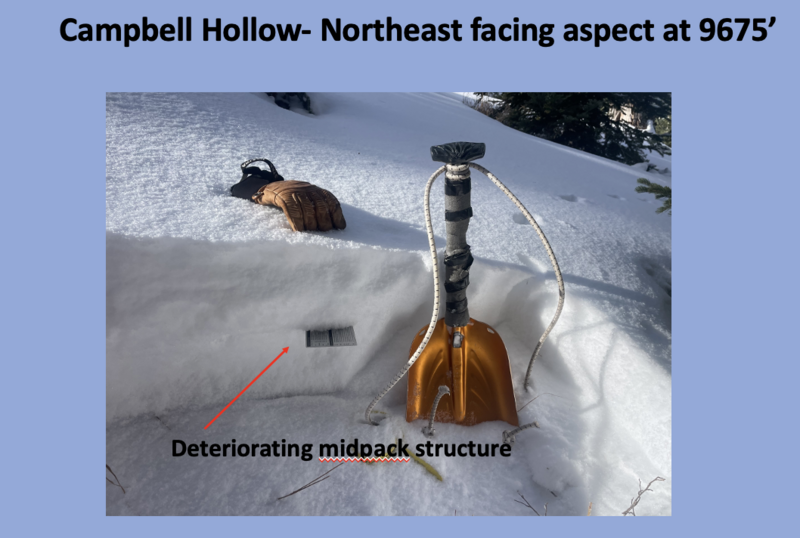 Simple snowpit profiles above from my travels Wednesday in Mill Hollow show a little structure in the snowpack, but not exactly the kind of foundation we wanna build our condo complex or our winter snowpack on.
