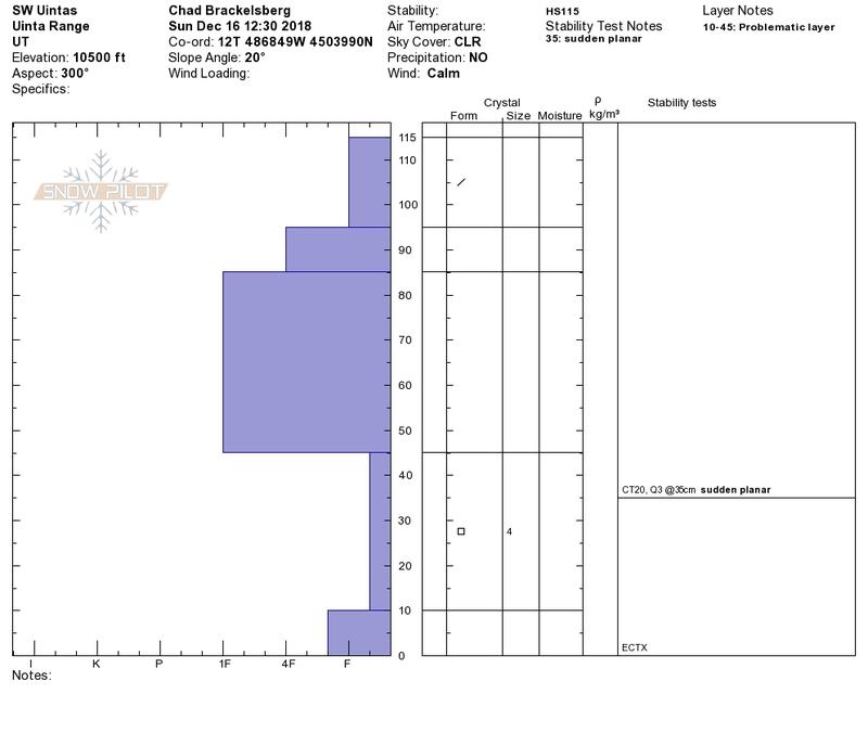Recent snowpit stability tests combined with the lack of avalanche activity suggests the pack feels pretty comfortable in its own skin... and that's good news. However, the Uinta's are a big range and there's lots of variables when it comes to snowpack depth and strength. Remember- "persistent weak layers" in the snowpack are a headache because they remain problem children for long periods of time. And all we need to do is find one weakness, maybe around a bush or rock that we can't see buried underneath the snow, collapse the pack, and now we're staring down the barrel of a scary avalanche. The usual suspect terrain comes to mind. Steep, rocky slopes with a shallow snowpack. So the way I'm avoiding this scenario is by simply avoiding the terrain where this setup exists.... mid and upper elevation, north facing slopes that harbored snow prior to the big Thanksgiving storm. There's a lot of terrain to ride today and not have to deal with unmanageable avalanche conditions, IF you chose slopes that had NO old snow prior to the big Thanksgiving storm.