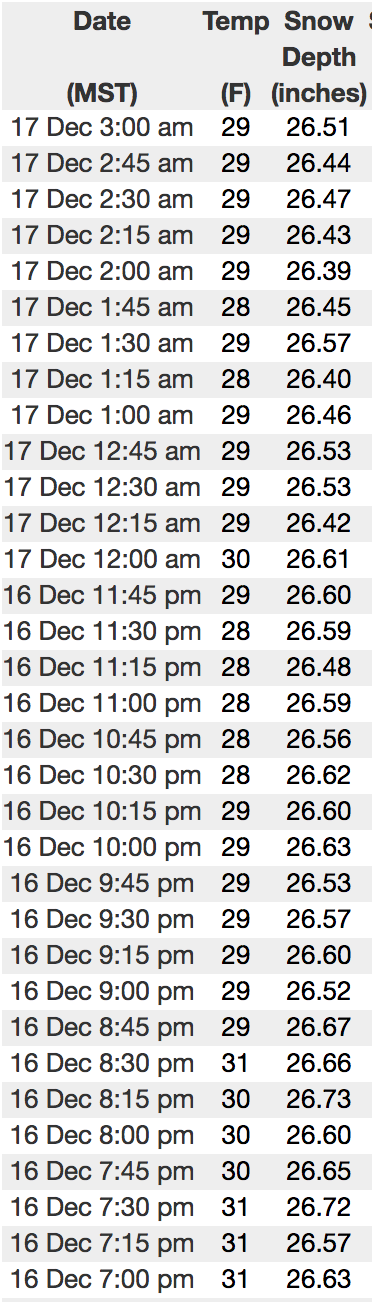 Above is recent hourly data from Upper Moffit Basin (9,126') along with wind data from Windy Peak (10,662'). To view more regional weather stations click here.