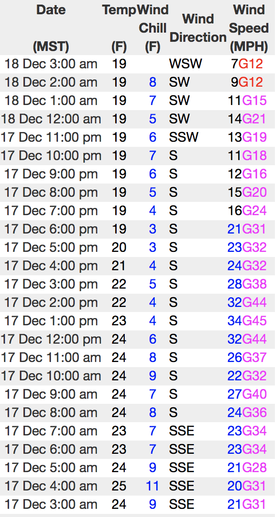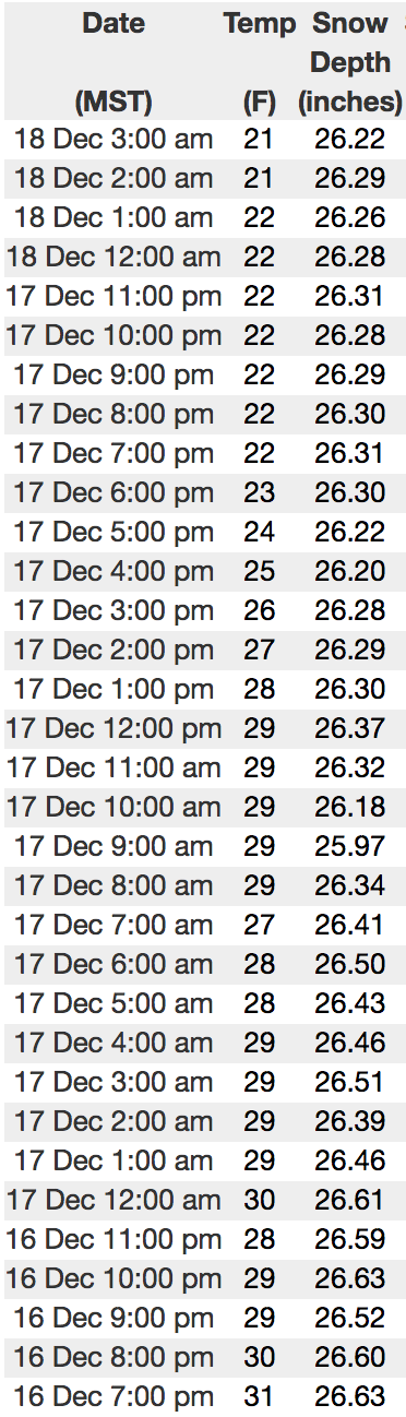 Above is recent hourly data from Upper Moffit Basin (9,126') along with wind data from Windy Peak (10,662'). To view more regional weather stations click here.