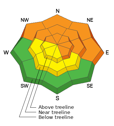 DECEPTIVELY DANGEROUS AVALANCHE CONDITIONS LINGER. Today, you'll find CONSIDERABLE avalanche danger on all steep, shady slopes. The danger is most pronounced in terrain facing the north half of the compass in the wind zone at and above treeline. Human triggered avalanches breaking to weak, sugary, midpack snow are LIKELY. Mid elevation slopes on the south half of the compass with similar layering offer MODERATE avalanche danger and human triggered avalanches are POSSIBLE.