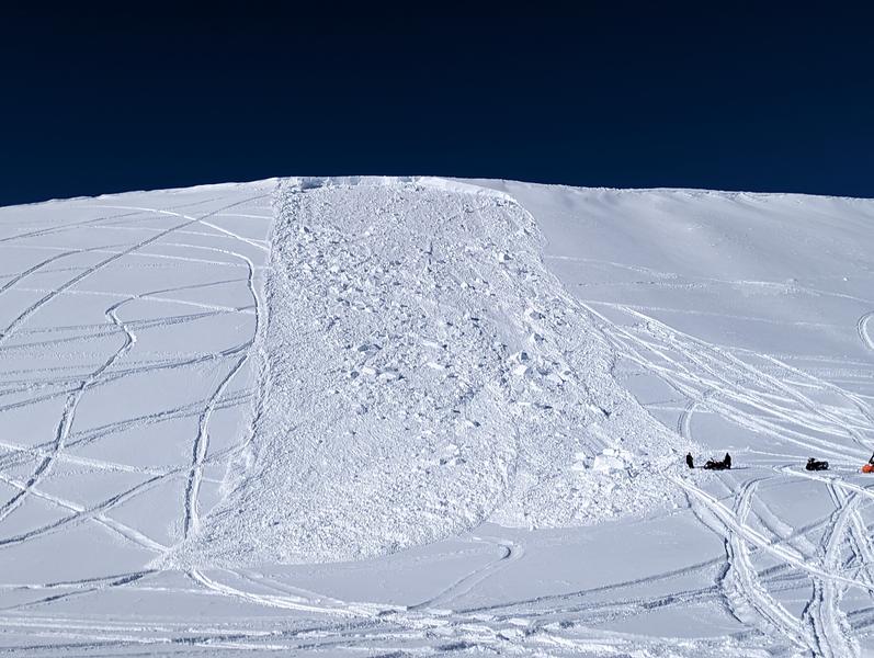 Yesterday, Joey Manship rolled up the this freshly triggered avalanche on the south half of the range near Tower Mountain. Yeah, getting pinned under the debris could easily ruin your day.  More info HERE