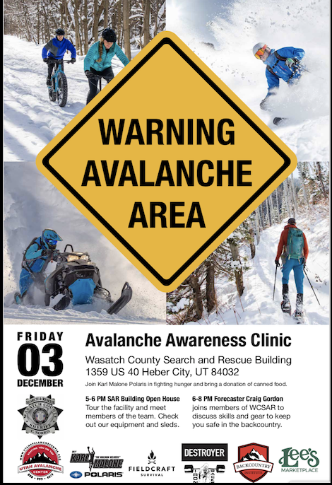 Looking for a basic avy awareness talk or maybe just a refresher? Well then, please join me along with Wasatch County Search and Rescue, 6:00 PM Friday December 3rd. All the deets are in the announcement above.