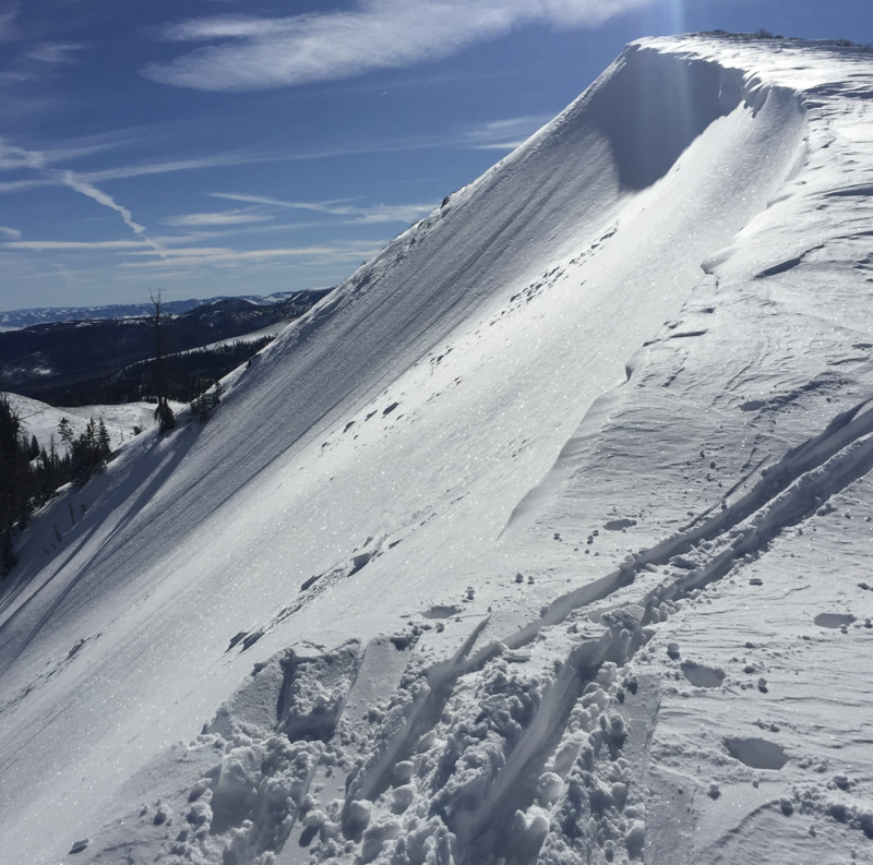 Since the weekend, winds have been all over the place, cranking into the 50's and 60's, and finding whatever loose snow there is left available to blow around and form dense pieces of wind drifted snow on the leeward side of upper elevation ridges and cross-load terrain features like chutes and gullies. Today, I think you'll find most of these pretty lifeless and not very well connected, but as always, don't let your guard down. Be on the lookout for and avoid any fat, rounded piece of snow especially if it sounds hollow like a drum.