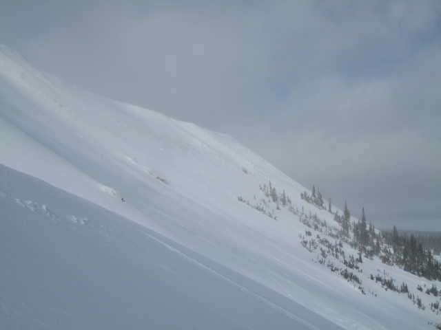 Winds have been blowing steadily since Friday morning and now with a little fresh snow to work with, I bet they're having no problem forming dense pieces of wind drifted snow that will be sensitive to our additional weight. Found mostly on the leeward side of upper elevation ridges, I wouldn't be too surprised to find a pocket or two cross-loaded in terrain features like chutes and gullies. Heads up.... today's fresh drifts might be a little more connected then the past few days, and once triggered, may pack more of a punch than you might expect. So for today, look for and avoid any fat, rounded piece of snow especially if it sounds hollow like a drum. Lose a little elevation, you'll lose the problem, and be rewarded with soft, creamy snow.