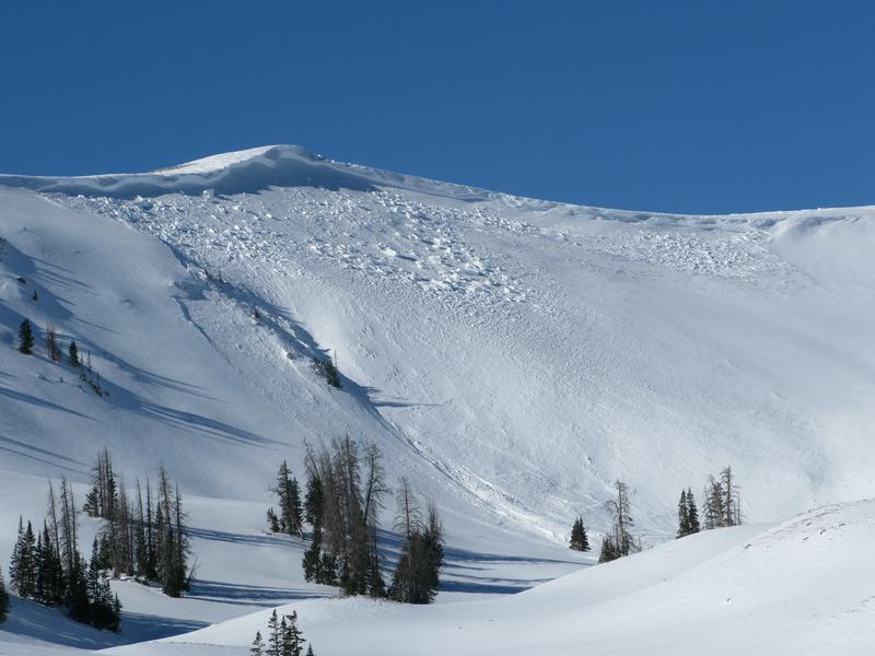 No recent avalanche activity observed since Ted and I rolled into Upper Moffit Basin on Monday to work on a weather station and discovered this monster avalanche that peeled off Windy Peak sometime late last Saturday. Breaking 10' deep and 600' wide... an eye-catcher for sure. In addition, there's no shortage of both human triggered and natural avalanches from last weeks storm and an updated list is found HERE