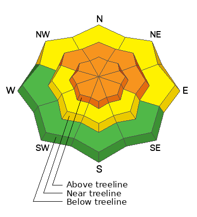 Around the compass you'll find CONSIDERABLE avalanche danger on all steep, mid and upper elevation, wind drifted slopes. The danger is most pronounced in the wind zone at and above treeline, in terrain facing the north half of the compass, particularly on slopes with an easterly component to their aspect. Human triggered avalanches initiating in the storm snow and then breaking to weak, sugary, midpack snow are LIKELY.