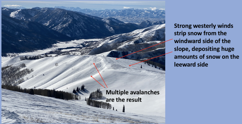 Don't get surprised... winds penetrated into lower elevation terrain as well where you'll find MODERATE avalanche danger and human triggered avalanches are POSSIBLE on recently wind drifted slopes.