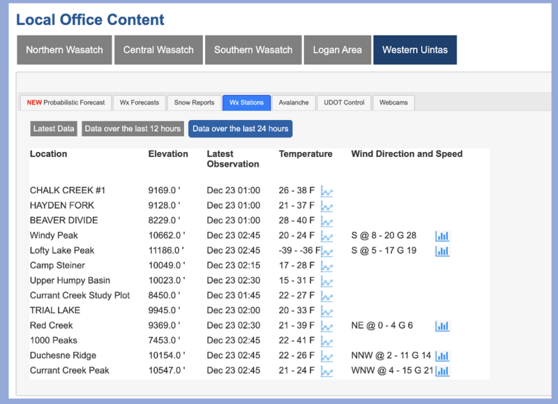 Craig upgraded the Uinta weather station network this summer and all that real-time info is found HERE. Simply click on "western Uinta" tab and then "weather stations" tab.