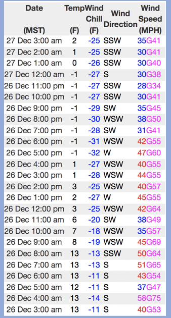 Above is a 24 hour data dump from Windy Peak (10,662')