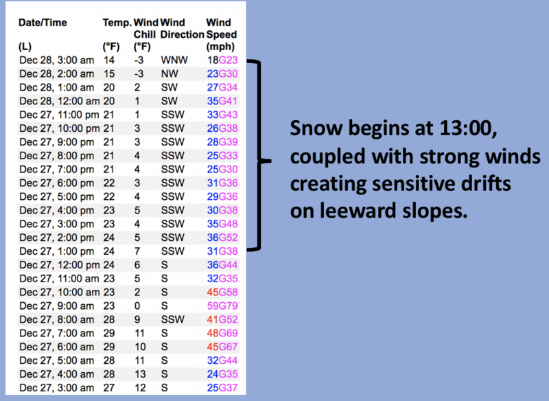 A 24 hour data dump from Windy Peak (10,661') illustrates where you're most likely to find a fresh, sensitive fresh drift.