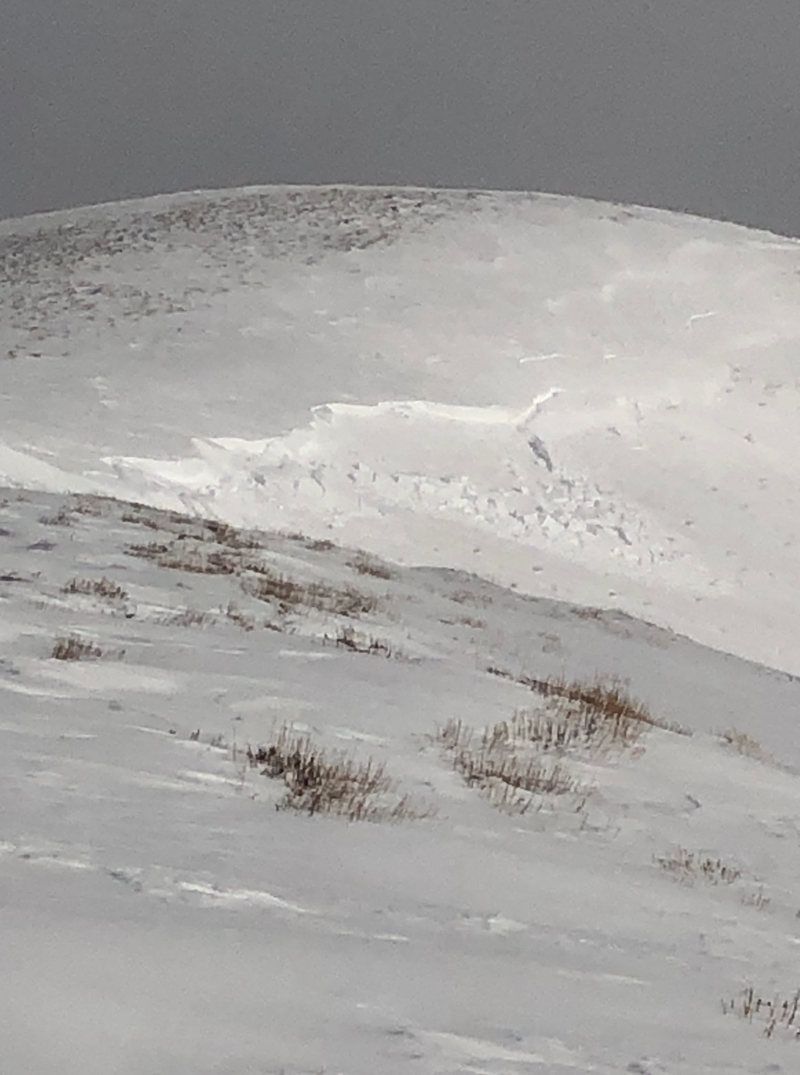 Northeast winds bumped into the 20's and 30's for a few hours yesterday, loading upper elevation terrain in unusual locations and whipping up a fresh round of drifts on slopes with a westerly component to their aspect. While mostly manageable in size, if you're getting into high alpine terrain, today's wind slabs might break a bit wider and deeper than you'd expect and could boss you around. Found along the leeward side of upper elevation ridges and around terrain features like chutes and gullies, your best bet for avoidance is to simply steer clear of any fat, rounded piece of snow, especially if it sounds hollow like a drum. In addition, look for shooting cracks in the snow which are sure signs of unstable conditions.