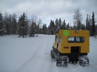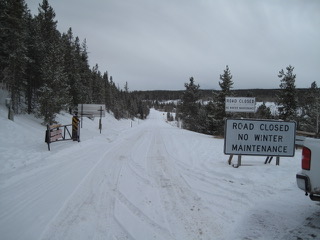 A happy cat realizes winter is finally here as the Mirror Lake Highway from the Evanston side of the range is closed.