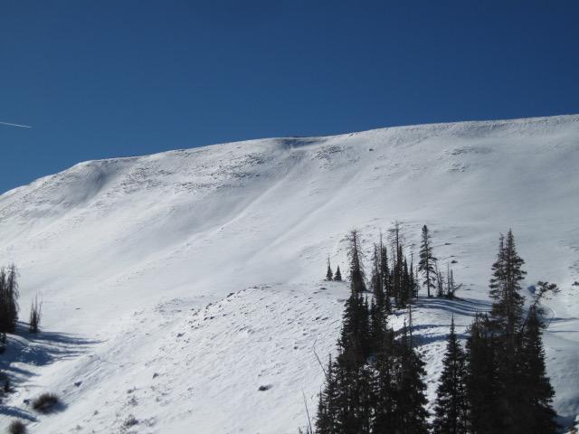 While the avalanche hazard is generally LOW, there may be a shallow, fresh wind drift that reacts to our additional weight. Sure... you'd really have to go out of your way to find an avalanche today, but if you do trigger a slide the danger of slamming into a season ending obstacle is very real. So... look for and avoid any fat, rounded piece of snow, tone it down, take it slow and remember- it's a long season and you definitely don't want to instantly end it before things get going.