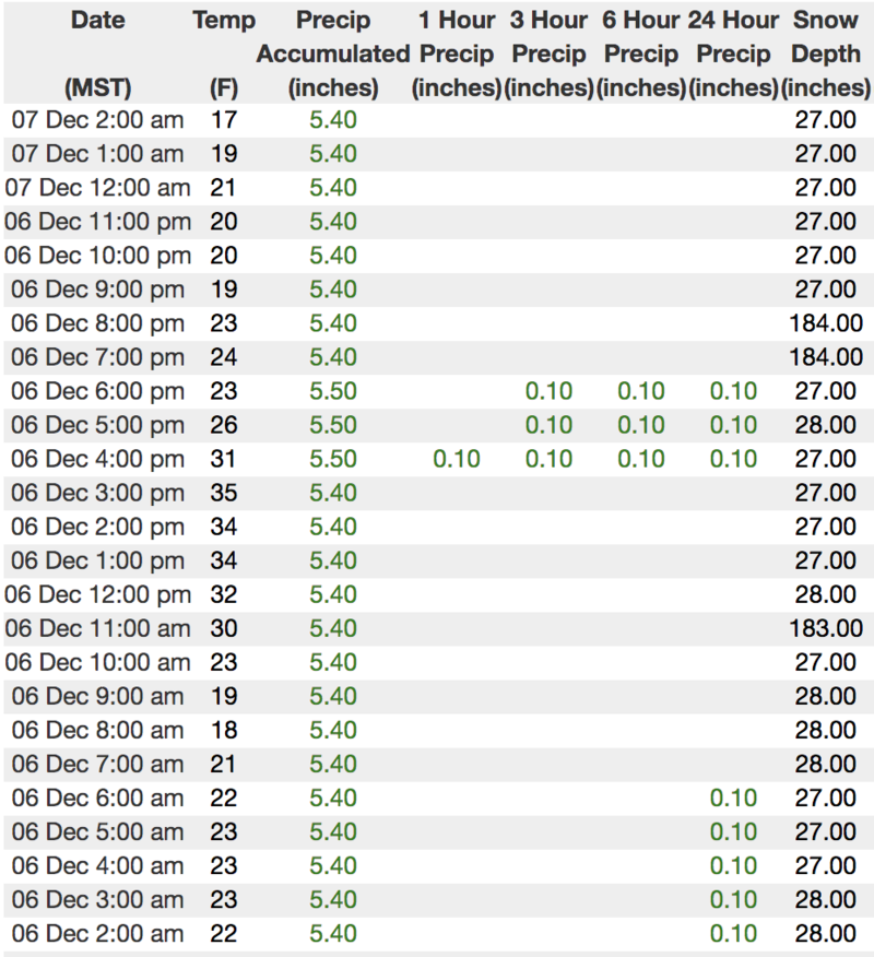 Click here for more real time Uinta winds, temperatures, and snow depth.