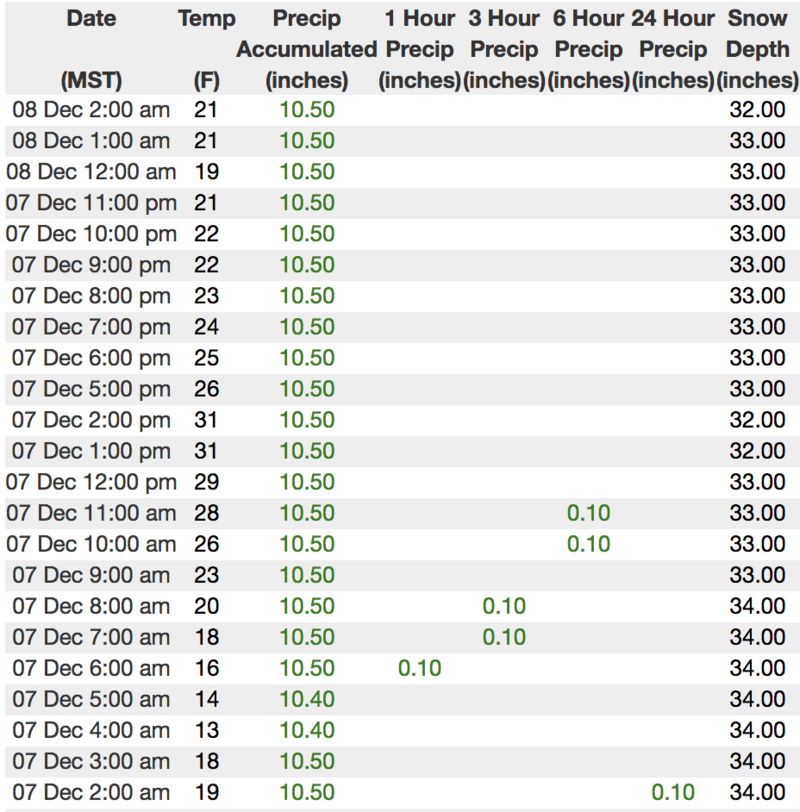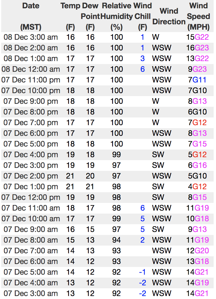 We are working to get the entire Uinta weather network back online, but got Windy Peak up and running yesterday. Above is 24 hour data from Trail Lake (9945') along with wind data from Windy Peak ( 10,662').