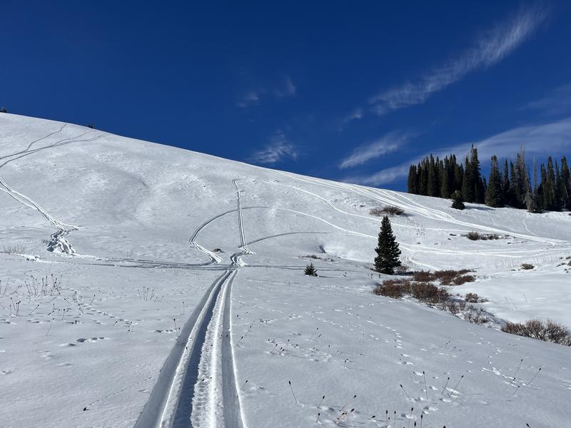 The best riding exists in upper elevation terrain on the north half of the compass and on slopes less than 30°.