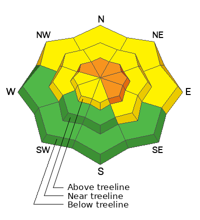 In the wind zone, at and above treeline, CONSIDERABLE avalanche danger is found on steep slopes, especially those facing the north half of the compass, and particularly terrain with an easterly component to its orientation. Human triggered avalanches breaking to weak, sugary, midpack snow are LIKELY. Mid and lower elevation shady slopes with similar layering offer MODERATE avalanche danger and human triggered avalanches are POSSIBLE