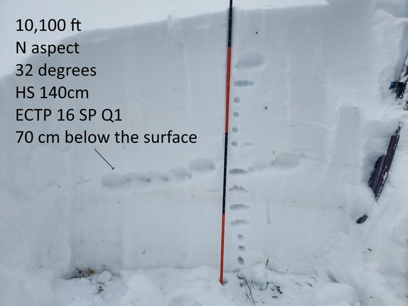 Micheal J's pit profile confirms our continued concern wit our snowpack setup. MJ's got a great trip report from yesterday while he was in the Hoyt environs.