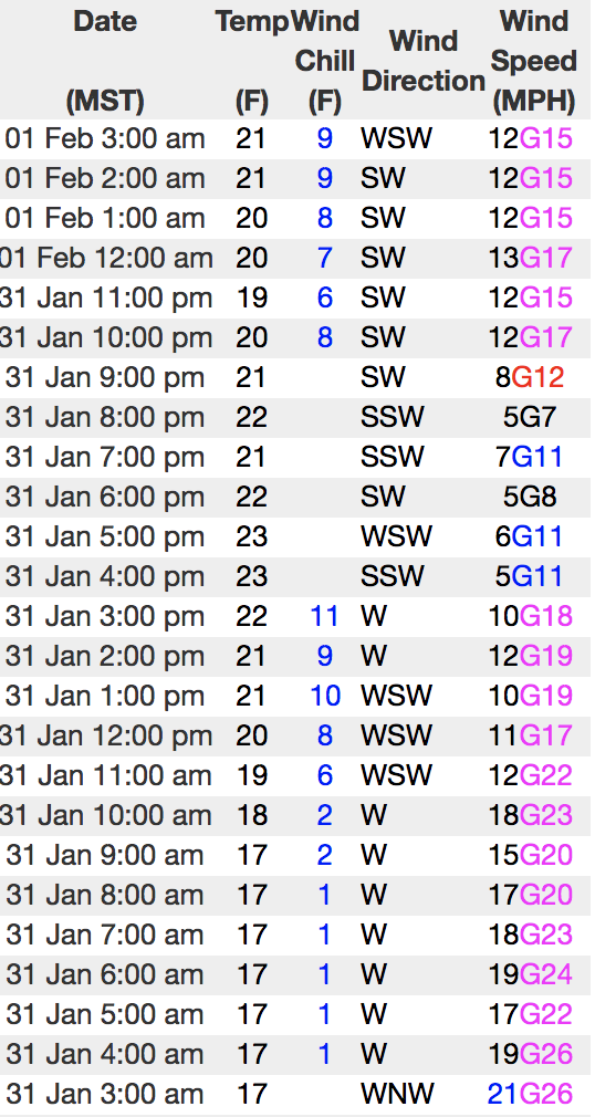 Above is hourly data from Trial Lake (9,945') and Windy Peak (10,662'). To view more regional weather stations click here.