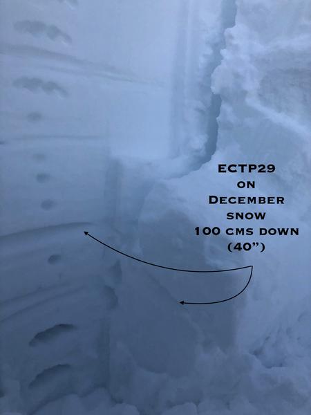 Our persistent weakness now buried deep in the snowpack isn't healing anytime soon. As a matter of fact, this is the type of structure that is particularly dangerous because we don't even have to be on a steep slope in order to trigger a slide... we just need to be connected to it. Problem is, we've got great coverage, the range is fat and white, and the snowpack is gonna feel really strong and supportable. As a matter of fact, we can ride some slopes without incident, thinking we're good to go, but roll up to steep, wind drifted terrain that didn't slide during last weeks big storm and now we're staring down the barrel of a dangerous avalanche.