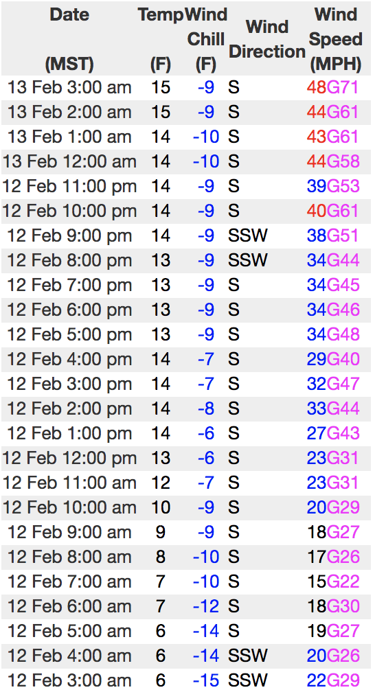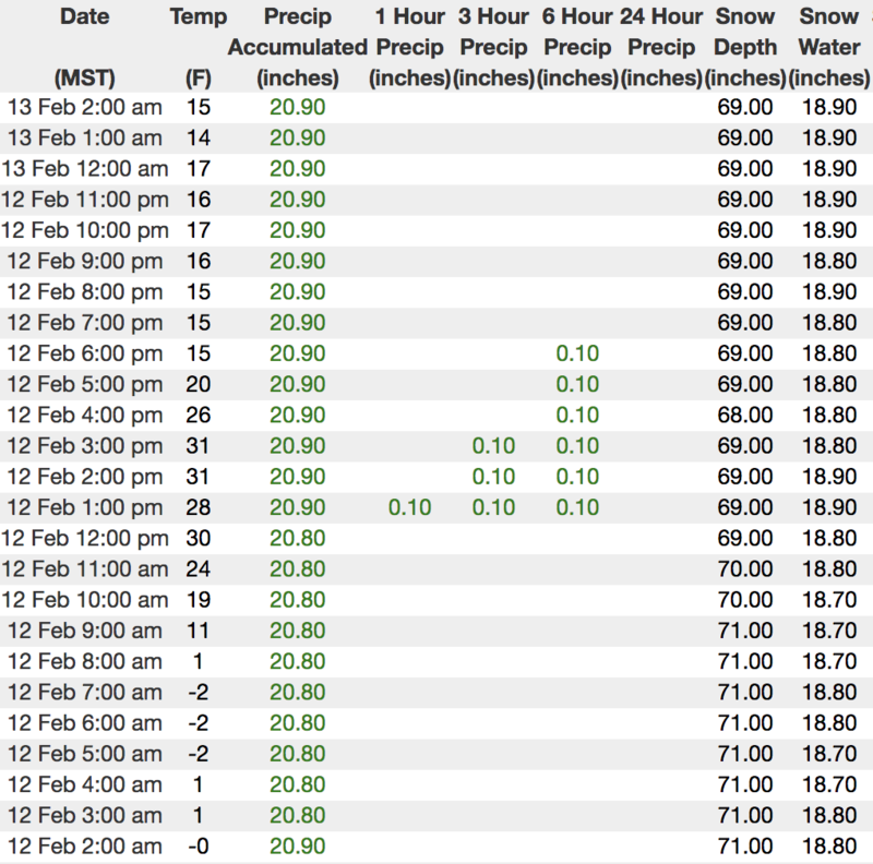 Above is hourly data from Trial Lake (9,945') and Windy Peak (10,662'). To view more regional weather stations click here.