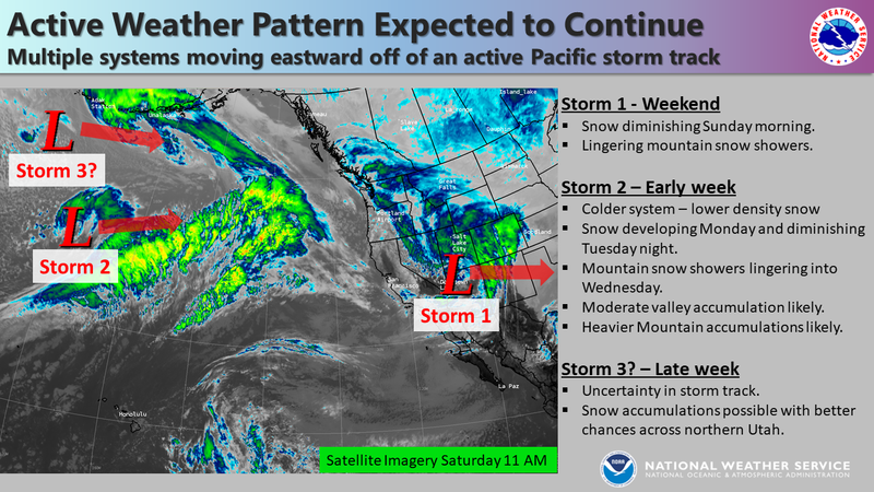 A break in the action until Monday midmorning when a strong winter storm sets its sights on the state. Look for a good shot of snow developing by around lunchtime with gusty winds along the ridges. Storm totals around a foot seem reasonable by Tuesday morning.