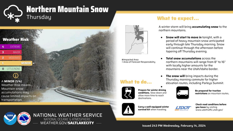 Our good friends and longtime partners at the City of Salt's National Weather Service, have issued a Winter Weather Advisory for the Uinta zone.