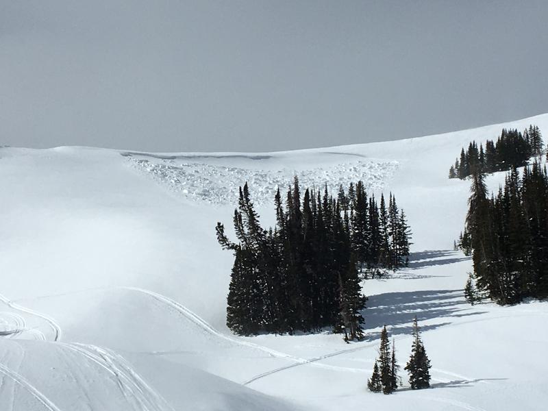 Ted was in the Gold Hill/Moffit Basin zone yesterday and spotted this quasi-fresh, rider triggered wind drift. Here's his take.... "I was a little surprised to see how wide and connected it was roughly 200' wide, 2-3' deep and it did not travel far as the slope angle becomes less. Thinking maybe some low density or preserved faceted snow that was the old snow surface was buried by heavy wind drifted snow". More on Ted's travels and always informative insight found here.