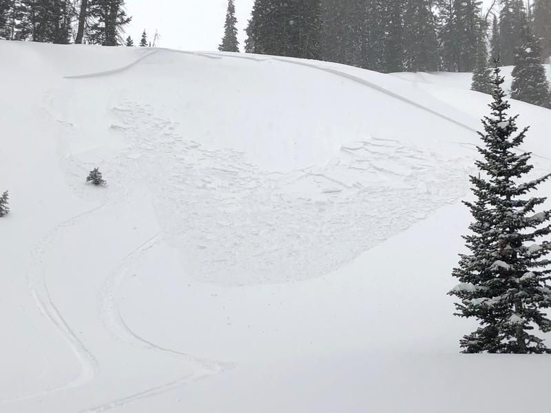 Triggered yesterday before the storm got going, steep, wind drifted terrain offered sensitive slabs by days end Sunday. Today's slabs are gonna have a much different characteristic breaking deeper and wider and packing heat.