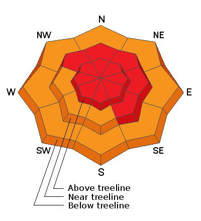 Recent winds and heavy snow overloaded our fragile snowpack and the avalanche danger is nothing to mess with.  DEEP, DANGEROUS, HUMAN TRIGGERED AVALANCHES ARE VERY LIKELY.  In the wind zone, the avalanche danger is HIGH on slopes facing the north half of the compass, particularly those with an easterly component to their aspect.