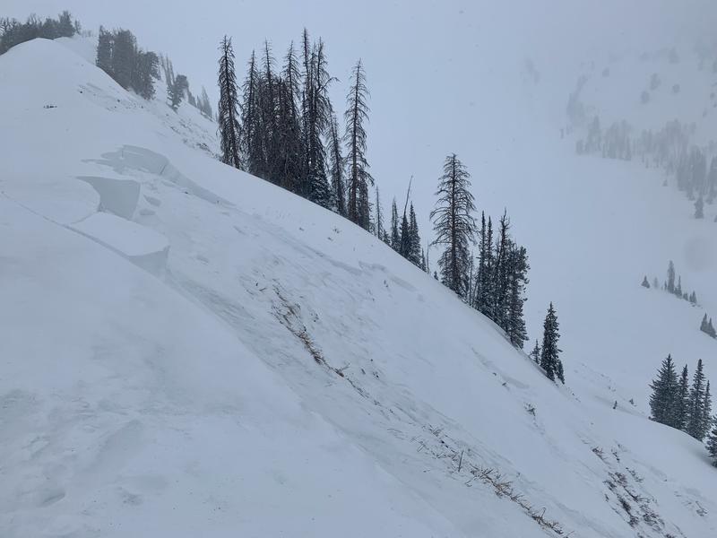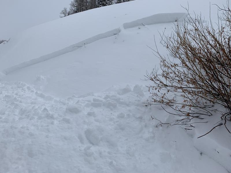 Winds are always the big game changer in the Uinta's and Monday's two shot combo of storm snow and stiff winds had no problem whipping up cohesive wind drifts which will react to our additional weight. Found mostly on the leeward side of upper elevation ridges, also be on the lookout for drifts forming lower downslope than we usually expect to see and around terrain features like chutes, gullies, and road cuts. In addition, you'll want to look for and avoid any fat, rounded, piece of snow, especially if it sounds hollow like a drum. And remember- triggering even a small wind drift offers the potential to quickly get out of hand if that piece of snow breaks into deeper buried weak layers as it crashes onto the slope below.