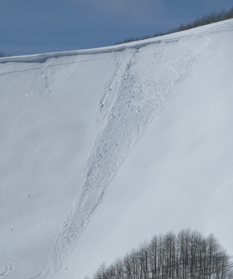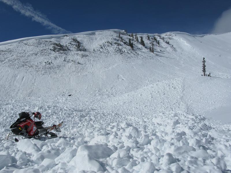 And sadly, the tragic avalanche accident on February 9th in Chalk Creek is pictured above. Triggered while the sledder was low on the slope, this slide broke deep and wide, taking out the entire seasons snowpack, snapping timber as it crashed down onto the slope below.