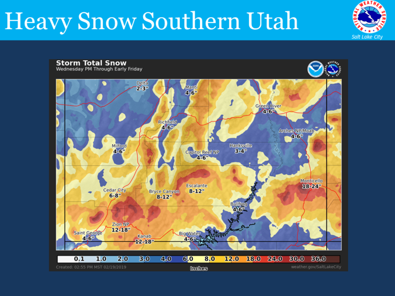 Dang.... the storm is headed south and will mainly affect southern and central Utah today into Friday. We are on the northern fringe, so we'll see occasional light snow with continued cold conditions with highs reaching into the low teens. Easterly winds blow in the 20's and may bump into the 30's and 40's along the high ridges as the day progresses.