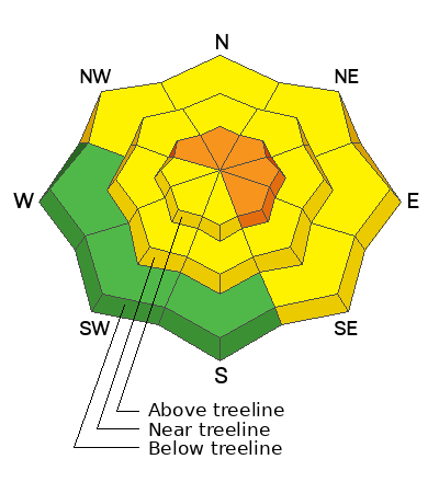 In addition, several weak layers varying in thickness, strength, and characteristic lurk in the snowpack near and below treeline around the compass where you'll encounter MODERATE avalanche danger and human triggered slides are POSSIBLE on all aspects.